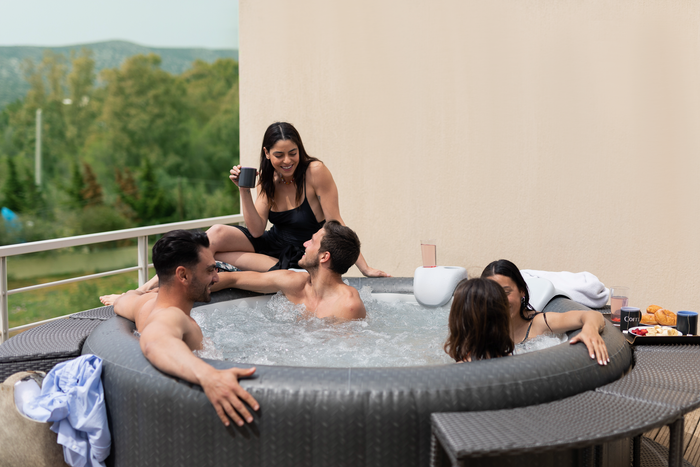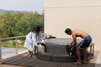 The COMFORT collection uses a simple inflatable hose for spa inflation. Utilizing our built-in control box, there is no need to fumble with fussy connectors. Simply connect your hose and click the bubble button to watch your spa rise.