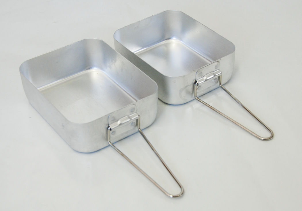 Set of 2. Long fold-out handles. Dixies fit into each other. Lightweight aluminium contruction.